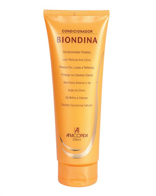 O Condicionador Biondina é indicado para cabelos loiros ou tingidos. Restaura os cabelos afetados por produtos químicos, mar, piscina e sol. Realça cor, luzes e reflexos. Dá brilho e maciez. Contém camomila natural.