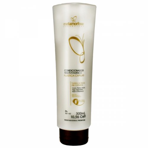 O Condicionador Multivitamínico é indicado para todos os tipos de cabelo. Restaura os fios, proporciona cabelos macios, sedosos e brilhantes. Não contém sulfato, sal, petrolatos ou parabeno. Após lavar os cabelos com Shampoo Multivitamínico Metamorfose, aplique o Condicionador Multivitamínico Metamorfose massageando os fios como se estivesse penteando-os suavemente com os dedos. Deixe agir por alguns minutos e enxágue retirando todo o excesso. 300 ML.