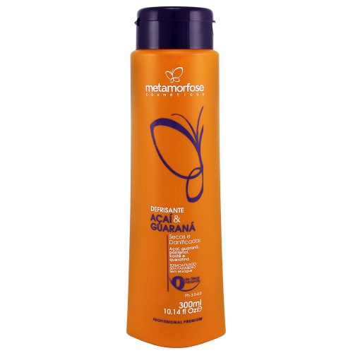 O Defrisante Açaí e Guaraná é indicado para cabelos quimicamente danificados. Desenvolvido para surpreender por suas propriedades revigorantes e regeneradoras, agindo potencialmente em cabelos danificados, devolvendo o brilho, sedosidade e maciez perdidos através de processos químicos. O Defrisante atua revitalizando dia-a-dia o cabelo, protegendo-o contra novos desgastes. Aplicar nos cabelos limpos, estando secos ou úmidos. Coloque uma pequena quantidade do Defrisante açaí e guaraná Metamorfose na palma das mãos e aplique nos cabelos, penteando após a aplicação. 300 ML.